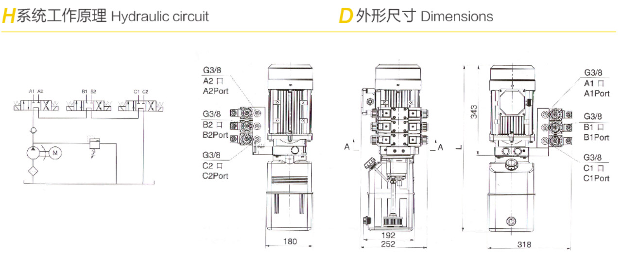 此液壓動(dòng)力單元集成了高壓齒輪泵、電機(jī)、液壓閥、中央油路閥塊、油箱等原件,可實(shí)現(xiàn)多組雙作用油缸的單獨(dú)動(dòng)作。